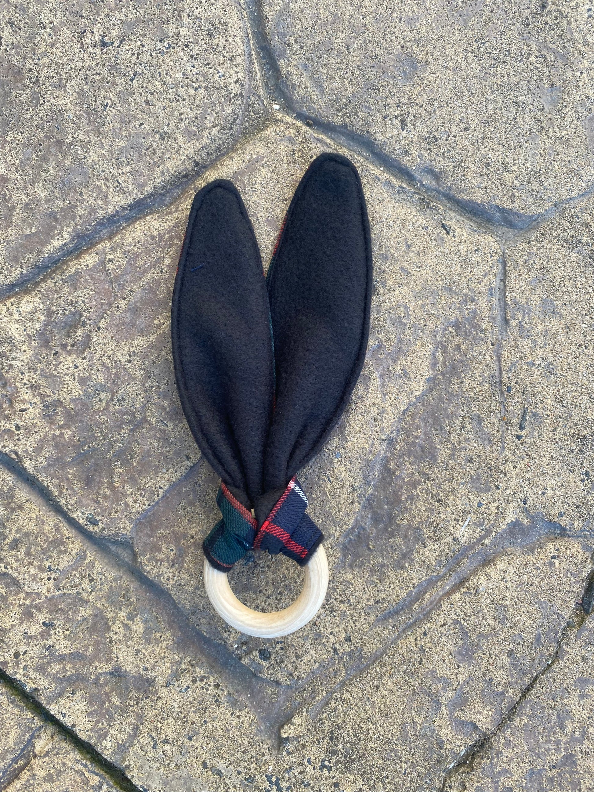 Bunny ear teether in Hunter tartan for your little precious' sensory play!